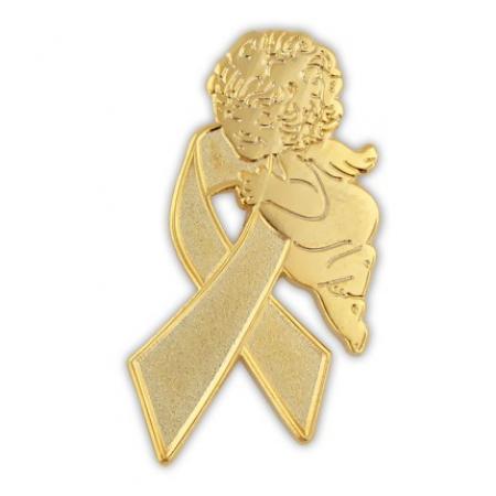 Gold Ribbon Angel Pin
