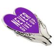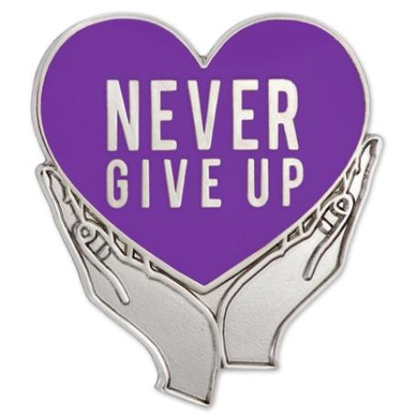 Raise awareness and hope with our Purple Never Give Up Pin. It is made using the jewelry-quality cloisonné process with enamel color fills. The background is sandblasted and nickel plated then polished for a smooth look. This pin is a great gift when showing your support for purple awareness such as Domestic Violence Awareness, Animal Cruelty Awareness, and many more. Our Never Give Up Pins include a standard clutch back and are individually poly bagged.