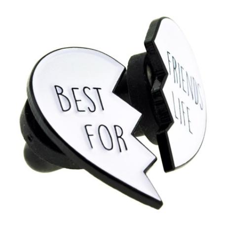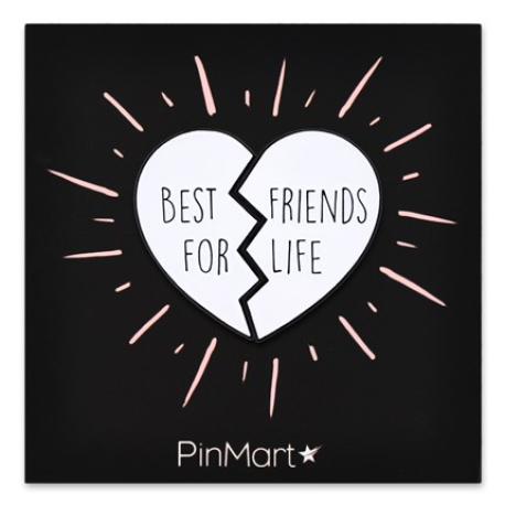 Friendship is the most important thing to have in life. A good friend provides love, laughter, and happiness, especially at the toughest times. When you find that one friend that lights up your world, never let them go and show them your graciousness. Our Best Friends Pin Set is a fun way to share your feelings. Maybe your bestie is having a birthday or getting married to the one you approved of, or maybe she is moving far away! Give them their half of the Best Friends Pin Set as a gesture to never forget and always be connected to them. This pin is die struck from fine jeweler's metal, is black dye plated and white enamel filled. It is displayed on a black 2" x 2" cardstock and sealed in a poly bag. Each pin half comes with a rubber pin backing.