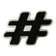 #bestpinever. Get your message out with our Hashtag # Pin. This pin is made well using a high-quality cloisonné process. It is black enamel filled, plated in nickel and polished smooth. Unique and sleek, this number sign pin will look great on a necktie, shirt collar or jazz up your jean jacket. It includes a standard clutch back and is individually poly bagged.