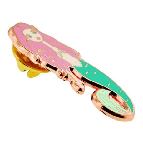 Our mystical Mermaid Pin is sure to enchant a special under-the-sea themed party. It is made with the high-quality cloisonné process, is enamel color filled, copper plated and polished smooth-to-the-touch. This Mermaid pin will look stylish on your lanyard, jacket lapel, beach tote or sun hat. It includes a standard clutch backing and is individually poly bagged for protection.