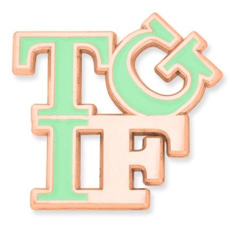 TGIF! The thing we all want to hear after a long boring week. So ready for the weekend, ready to relax or party, just do you?! Our TGIF Pin will remind you Thank – God – It’s – Friday! Seeing it on your back pack, jacket, lanyard will surely put that weekend smile on your face. This happy pin is a 3-D mint color injected copper plated cast. Give it to friend as a birthday gift or keep it for yourself with your other weekend wonders. It includes a standard clutch back and each are individually poly bagged.