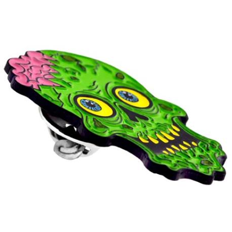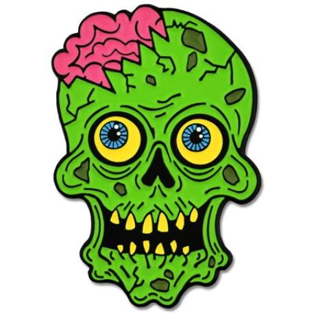 Our Zombie Brains Pin is perfect for the morbid mind! If gore, horror and creepy is your thing, this would be a strikingly gross addition to your leather jacket, the guitar strap, or grave yard I.D. badge. This scary zombie skull pin is die struck from jeweler's metal, features bright colored enamel and is black dye plated. Give it in the favor bags at a Haunted Halloween party, or to your group going through a scary maze walk. It comes with a standard clutch back and they are individually poly bagged.