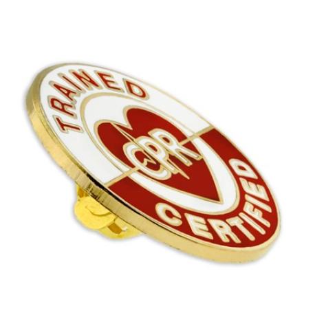 Let the world know that you are trained and certified in CPR with this quality lapel pin. This pin is made using the cloisonné process and plated in gold. Perfect to hand out at a CPR class or health fair, this stylish pin will look great on a jacket or gym bag. Each includes a standard clutch back and is individually polybagged.