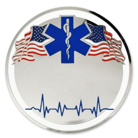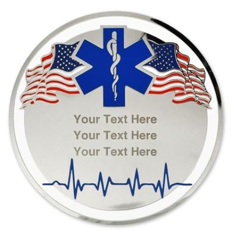 Our Engravable EMS Coin is made with the high-quality Cloisonné process, enamel filled with white, red, and blue colors, nickel plated and polished to a mirror-like finish. Both the front and back feature the caduceus symbol and the back can be engraved with a name or message. This is the perfect gift for your favorite medical professional. Each coin comes in a plastic protective sleeve.