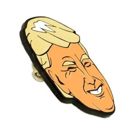 Whatever your political views are, there's no denying the influence of the 45th President of the United States. This Trump Face Pin is die struck from a fine jewelry metal, soft enamel color filled and black dye plated. It would look great on a lanyard or MAGA cap or make a fun handout at a political rally. Each pin includes a standard clutch back and is individually polybagged.