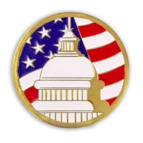 The U.S. Capitol Building Pin is die struck from jewelers metal, enamel color filled, gold plated and polished to a great shine. This great pin features the U.S. Capitol Building in the forefront of our American Flag! The Capitol building is home to our U.S. Government's Legislative Branch - the U.S. Congress, including the House of Representatives and the Senate. Each pin comes with a standard clutch back is individually poly bagged.