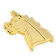 This Mustang Mascot Chenille Lapel Pin is die struck, gold plated with texture and has an extra-long 10mm back post. Perfect for a Letterman's jacket, chenille letter, for jr. high, high school or college athlete Mustang! Each includes a standard clutch back and is individually poly bagged.