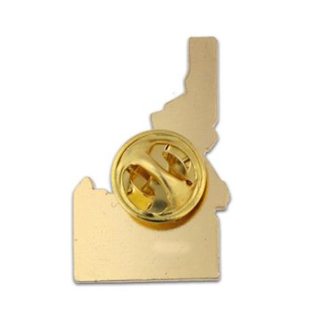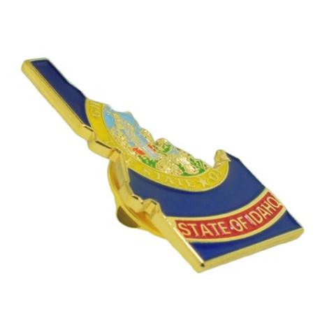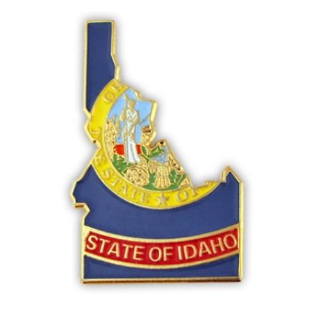 This beautifully designed lapel pin incorporates the shape of the State of Idaho (ID) with its unique flag design. The result is a cleverly designed Idaho state pin that makes a perfect gift, commemorative or promotional item. This pin is die struck from jeweler's metal, gold plated, and enamel color filled. Each piece includes a standard clutch back and is individually poly bagged.